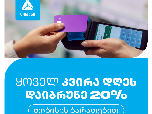 გადაიხადე თიბისის ბარათით თიბისის ტერმინალზე და დაიბრუნე გადახდილი თანხის 20%, ყოველ კვირა დღეს, სამცხე-ჯავახეთის სხვადასხვა ობიექტებში.