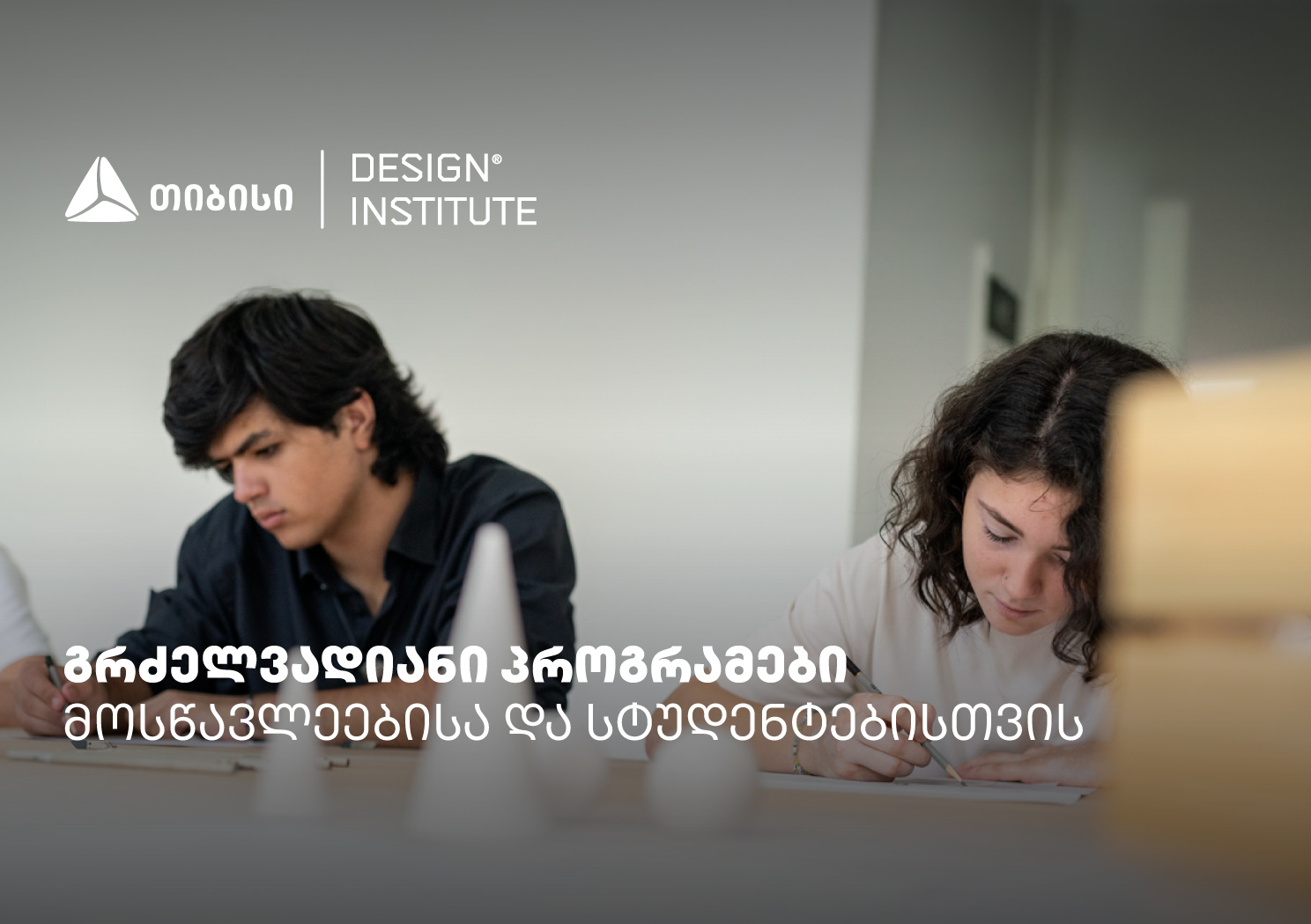 თიბისის მხარდაჭერით დიზაინის ინსტიტუტი სკოლის დამამთავრებელი კლასების მოსწავლეებს და სტუდენტებს ინტენსიურ გრძელვადიან პროგრამებს სთავაზობს: დიზაინის საფუძვლებისა და შემოქმედებითი და ვიზუალური ფიქრის მიმართულებით.